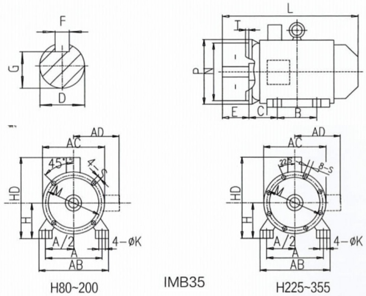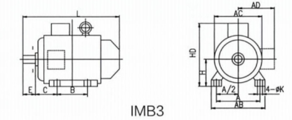 YE4 系列變頻調速三相異步電動機安裝及外形尺寸圖
